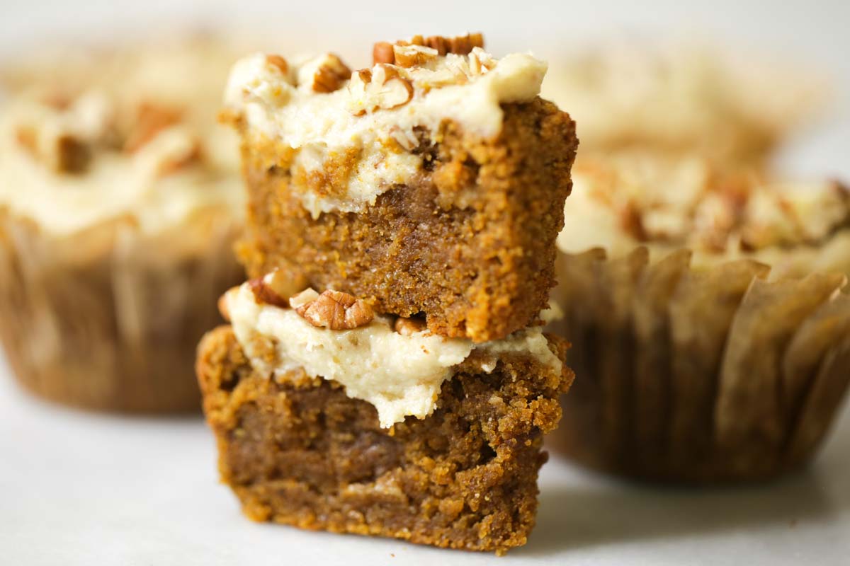 To make the frosting, combine all ingredients besides the pecans, in a food processor or blender, scraping down the sides as you go, until you reach frosting consistency.